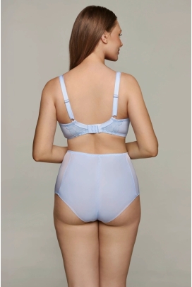 Wysoki stan otuli biodra i linię brzucha zapewniając bezpieczeństwo podniesie pewność siebie. Klasycznie wycięta nogawka optycznie wydłuży nogi. Kroczek wyposażony w bawełnianą wkładkę, która podnosi komfort w trakcie użytkowania. Linia bielizny Nutria od Ewy Bien w pięknym niebieskim odcieniu, który na myśl przywodzi krystalicznie czystą wodę. Przenikliwa, błyszcząca nić, która oddaje obraz padających promieni słońca na potok między swoistymi górami.